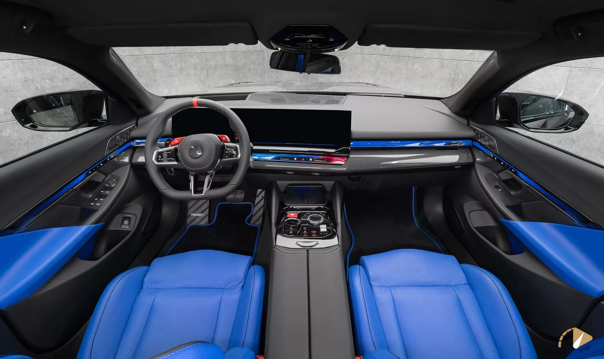 در بخش عقب، شاید جنجالی‌ترین تغییر به سیستم اگزوز اختصاص داشته باشد. منصوری این‌بار برخلاف طراحی کلاسیک چهارتایی M5، الهام خود را از هوندا سیویک تایپ R گرفته و سه خروجی اگزوز را در مرکز سپر عقب جای داده است. هرچند طراحی استاندارد ب‌ام‌و اصیل‌تر بود، اما آرایش جدید اگزوزها از نظر هماهنگی بصری، یادآور ساختار اگزوزهای M Performance در مدل‌های M3 و M4 است و جلوه‌ای متفاوت به بخش عقب خودرو داده است.