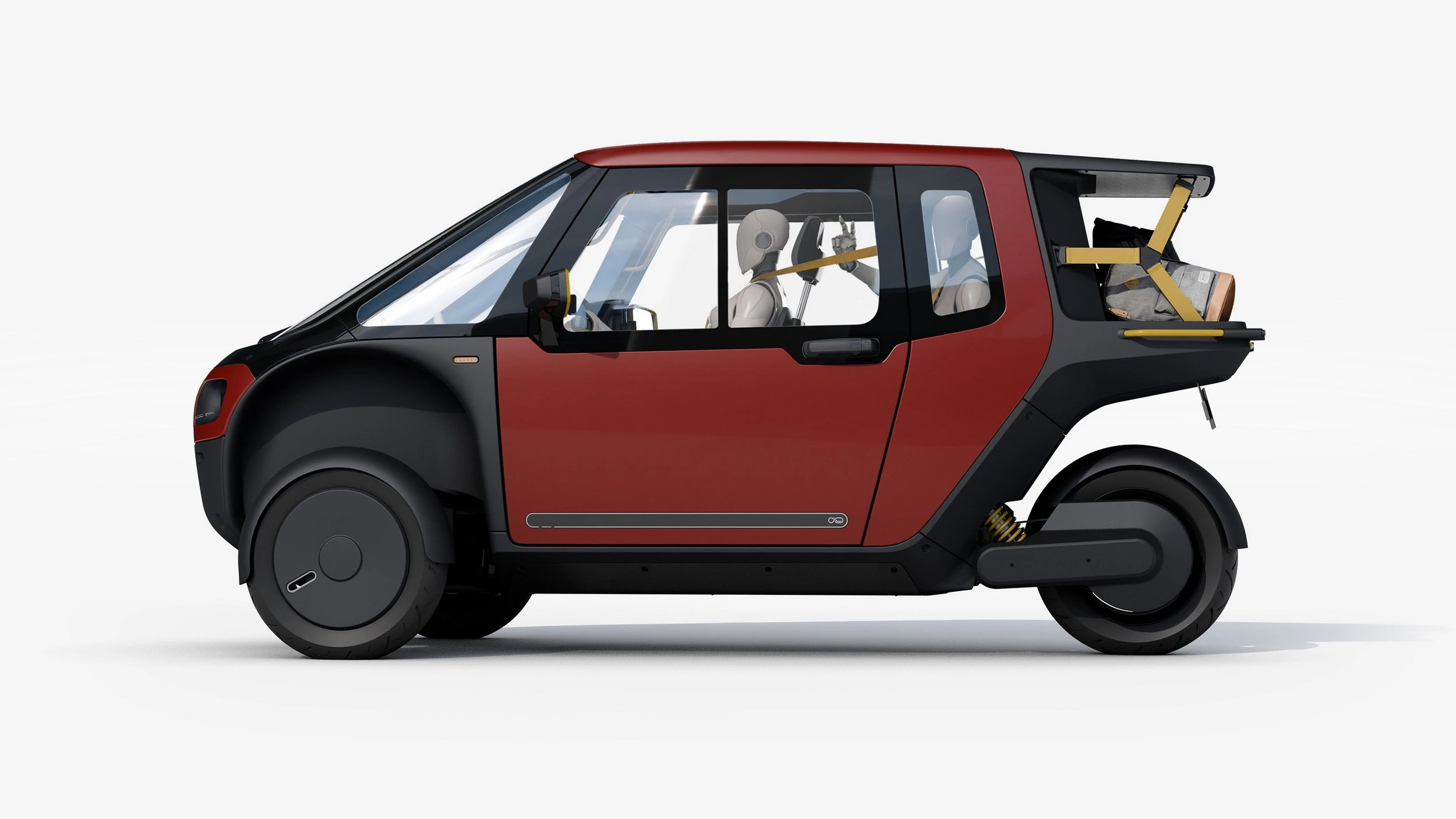 فضای داخلی ویگوز برای یک راننده و یک سرنشین کافی است و هر دو صندلی مجهز به کمربند سه‌نقطه‌ای هستند. همچنین پایه‌های Isofix برای نصب صندلی کودک در عقب تعبیه شده است، اگرچه استفاده از آن برای حمل کودک در بزرگراه به‌دلیل سرعت بالا و شرایط ایمنی، خطرناک محسوب می‌شود. فرمان سنتی خودرو جای خود را به دسته فرمان با ترمزهای تعبیه‌شده داده که از DNA دوچرخه‌ای این وسیله بهره می‌برد.