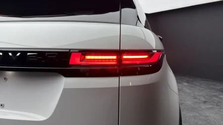 در نمای بیرونی، رنجرور ایووک L از زبان طراحی مدرن و خالص لندرور بهره میبرد که سادگی، قدرت و ظرافت را همزمان در کنار هم قرار داده است. چراغهای جلو با گرافیک پیکسل LED و جلوپنجره سهبعدی جدید، چهرهای امروزی و پرابهت به خودرو بخشیدهاند، در حالی که خطوط صاف و کشیده بدنه، حس پویایی و انسجام بصری را تقویت میکنند.