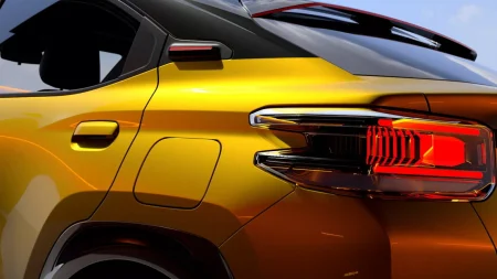 بازالت ویژن که نخستینبار سال گذشته به صورت دیجیتال معرفی شده بود، اکنون با تغییراتی که بر ظاهر اسپرت تأکید دارند در معرض دید عموم قرار گرفته است. این تغییرات شامل کاهش ارتفاع سیستم تعلیق و استفاده از رینگهای ۱۸ اینچی همراه با کالیپرهای ترمز قرمز میشود که در مقایسه با مدل استاندارد ۱۶ اینچی، چهرهای پویاتر به خودرو بخشیدهاند. در بخش عقب، دیفیوزر بزرگ و براق مشکی، چراغ ترمز مرکزی به سبک خودروهای فرمول یک و دو خروجی کرومی اگزوز جلب توجه میکنند. همچنین نوار مشکی میان چراغهای LED عقب، اسپویلر یکپارچه داکتیل را برجستهتر کرده و یک اسپویلر کوچک نیز روی سقف نصب شده است.