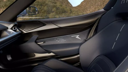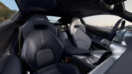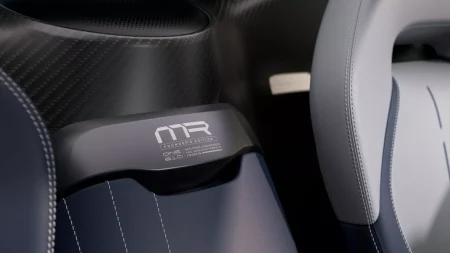 فضای داخلی این خودرو نیز رویکردی کاملاً شخصیسازیشده دارد. آرایش نامتقارن صندلیها برگرفته از خودروی شخصی مدیرعامل ریماک است و تمامی پوششهای کابین بهصورت دستدوز تولید میشوند. در بخش داخلی، تقریباً تمام سطوح قابل انتخاب و تغییر بوده و جزئیاتی نظیر دوخت تاریخهای تأثیرگذار در مسیر رشد ریماک روی رودریها، نشان MR روی پشتسریها و پلاک Founder’s Edition در قسمت میانی کابین دیده میشود.