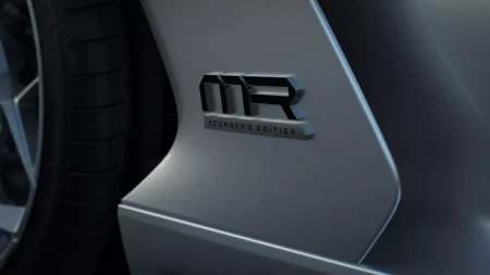در نمای بیرونی، نورا R Founder’s Edition با ترکیب رنگ دورنگ و جزئیات طراحی اختصاصی شناخته میشود. خطوط تزئینی باریک که روی کاپوت، سقف و بال عقب امتداد دارند، با الهام از ساختار مدارهای الکترونیکی طراحی شدهاند. نشان مخصوص Founder’s Edition که از حروف اول نام مت ریماک تشکیل شده، روی گلگیرهای جلو قرار گرفته و امکان سفارش عناصر هنری دستساز نیز برای بدنه خودرو فراهم شده است.