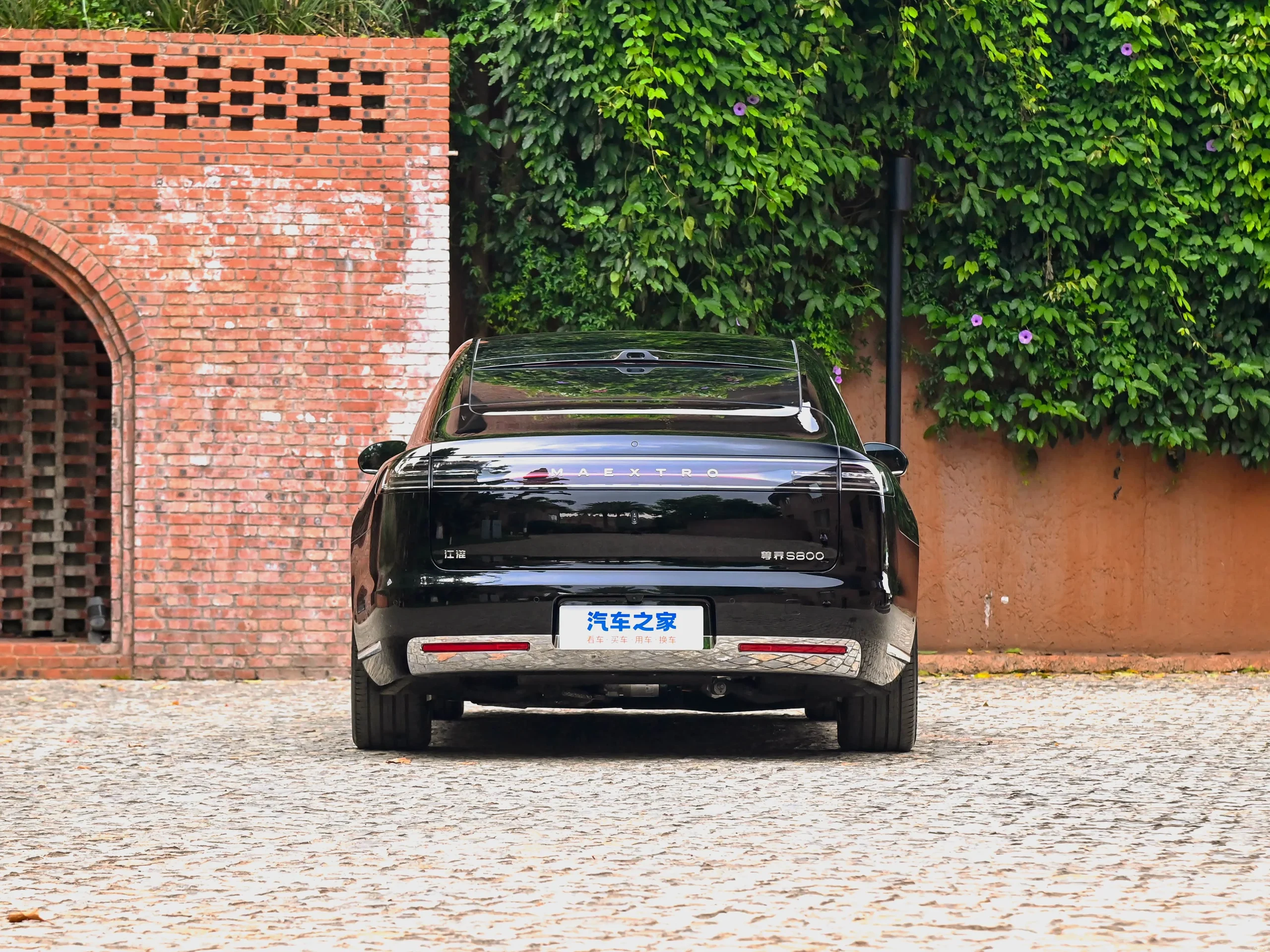ماکسترو S800 در کلاس سدانهای بزرگ قرار میگیرد و با طول ۵۴۸۰ میلیمتر، عرض ۲۰۰۰ میلیمتر و ارتفاع ۱۵۳۶ میلیمتر عرضه میشود؛ فاصله محوری این خودرو نیز ۳۳۷۰ میلیمتر است. در نمای جلو، چراغهایی با طراحی متفاوت دیده میشود که از دو المان افقی تشکیل شدهاند و هویت بصری متمایزی به خودرو میبخشند. این سدان لوکس همچنین به سیستم فرمانپذیری چرخهای عقب مجهز شده است.