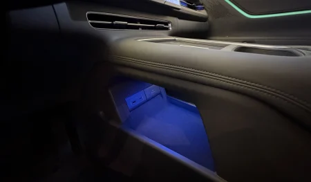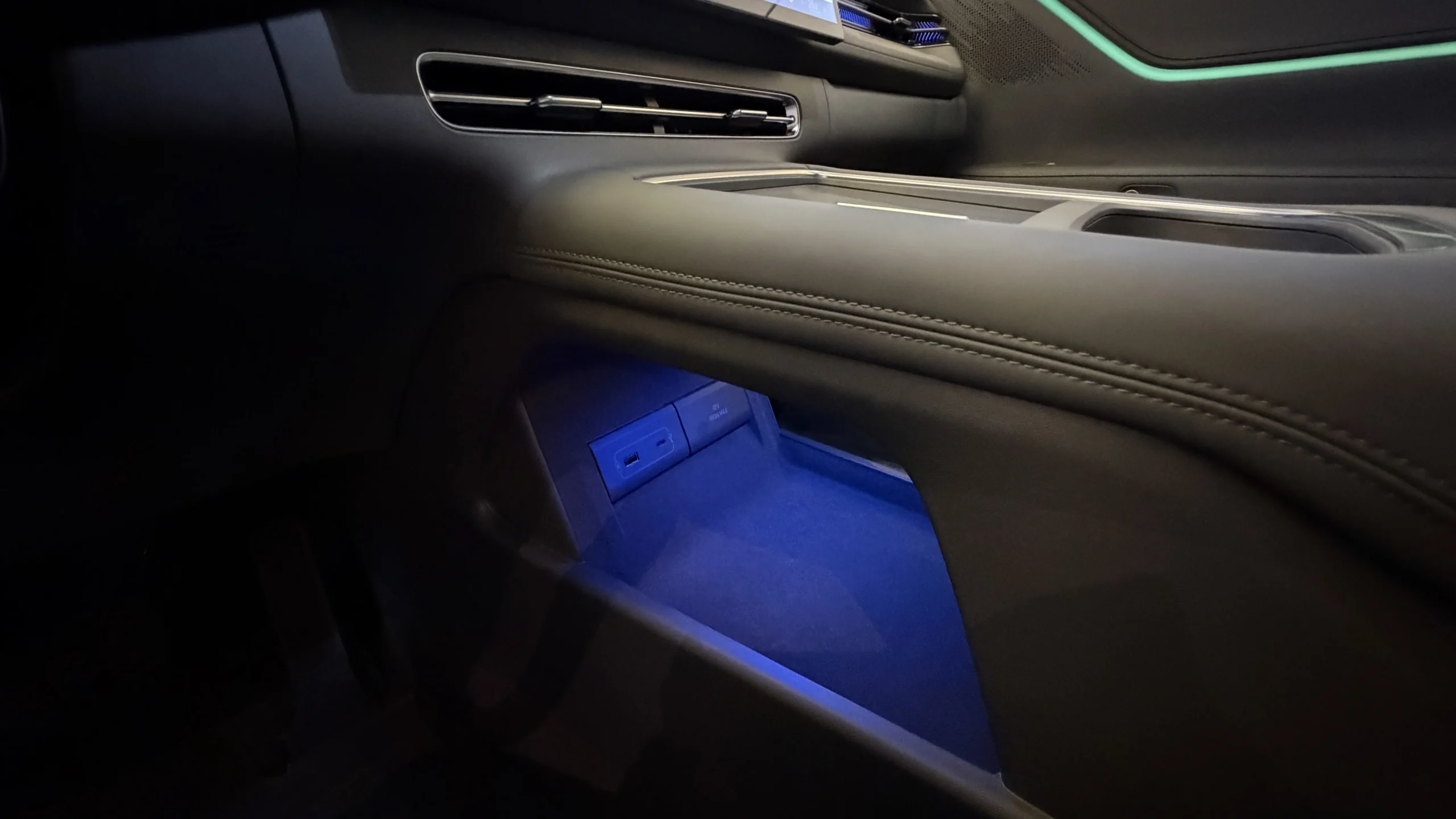 صندلیها از چرم مصنوعی نرم با فوم حافظهدار ساخته شدهاند و دارای تنظیمات برقی، گرمکن و تهویه هستند. طراحی تخت باتری در کف خودرو موجب ایجاد سطحی صاف در کف کابین و راحتی بیشتر سرنشینان شده است. ظرفیت صندوق عقب برابر با ۵۷۱ لیتر است که با خواباندن صندلیهای عقب به بیش از ۱۴۰۰ لیتر افزایش مییابد. سقف شیشهای پانورامیک ضد UV نیز روشنایی و حس باز بودن فضا را دوچندان میکند.