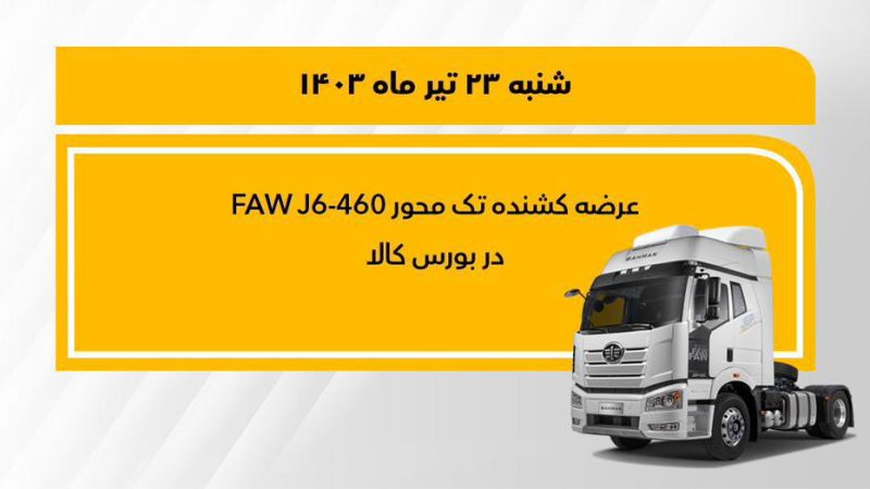 شرکت سیبا موتور از شرکتهای عضو گروه بهمن، کشنده تک محور فاو J6P-460 در بورس کالا عرضه میکند. این طرح فروش از ساعت 9 صبح شنبه 23 تیرماه 1403 تا پایان همان روز برگزار میشود.پیشپرداخت این محصول معادل ده درصد قیمت پایه اعلام شده است و بنابر جزئیات این طرح قیمت پایه، چهار میلیارد و 392 میلیون تومان اعلام شده که خریداران 23 شهریور 1403 کشنده خود را با مدل 1403 تحویل میگیرند. ناگفته نماند، این معامله بر اساس قوانین حاکم بر بورس کالا انجام میشود.