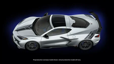 ظاهر این کوروت ویژه با رنگ نقرهای موسوم به Switchblade Silver طراحی شده و دارای اسپلیتر جلو، کاناردها و بال عقب از جنس کربن فلش است. سقف خودرو از فیبر کربن ساخته شده و چرخهای آلومینیومی فورج مشکی در اندازههای ۲۰ و ۲۱ اینچ، همراه با کالیپرهای ترمز آبی، به آن جلوهای خاص و اسپرت میدهند. تیم تخصصی جنرال موتورز همچنین بسته گرافیکی Jake C8.R را به این خودرو اضافه کرده که شامل یک خط روی کاپوت و گرافیکهای روی پنلهای عقب است و ظاهر خودرو را به نسخه مسابقهای نزدیکتر میکند. علاوه بر این، خودرو به درپوشهای مرکز چرخ Corvette Racing، پکیج روشنایی و نمای موتور و برچسب اختصاصی Bathurst 12 Hour مجهز شده تا هر دستگاه تجربهای منحصر به فرد از کوروت ارائه دهد.