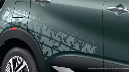 از نمای جانبی، طراحی بدنه تقریباً مشابه رنو تریبر است و تفاوت اصلی به رینگ‌های آلیاژی جدید و طیف رنگی متنوع محدود می‌شود؛ از جمله رنگ سبز Forest Green که از نیسان پاترول الهام گرفته شده است. در عقب، سپر با جزئیات خشن‌تر و درج نام گراویت روی در صندوق، هویت خودرو را نشان می‌دهد. نسخه‌ای که در تصاویر منتشر شده دیده می‌شود با نام Launch Edition است که تولید آن محدود به ۱۰۰۱ دستگاه است و با تزئینات نارنجی و برچسب‌های اختصاصی از دیگر مدل‌ها متمایز می‌شود.