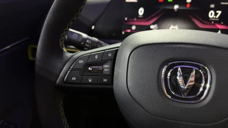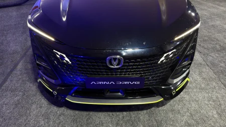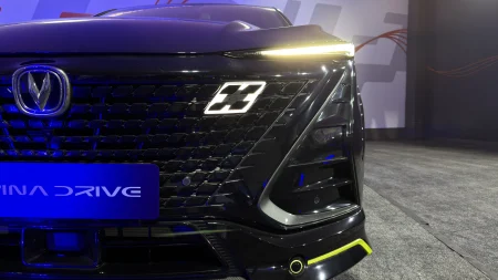 در نمای جلو، جلوپنجره بزرگ و یکپارچه بدون مرز مشخص با سپر، بیش از هر چیز جلب توجه میکند و چهرهای تهاجمی به خودرو میدهد. این سبک طراحی که نخستینبار در محصولات سری UNI دیده شد، اکنون به امضای ظاهری آنها تبدیل شده است. چراغهای روشنایی روز باریک در بالاترین بخش سپر جای گرفتهاند و چراغهای اصلی LED در قسمت پایینتر، درون قابهای تیرهرنگ، ترکیبی مدرن و متفاوت ایجاد کردهاند.