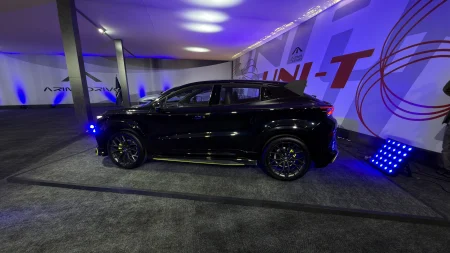 نمای جانبی UNI‑T مملو از خطوط تیز و حجمپردازیهای برجسته است که حس حرکت و پویایی را حتی در حالت توقف منتقل میکند. این خطوط شکسته که بار دیگر به فرم V اشاره دارند، باعث شدهاند نمای جانبی خودرو حالوهوایی اسپرت و متمایز داشته باشد. شیشه کوچک مثلثی میان درِ جلو و ستون A، علاوه بر زیبایی، به کاهش نقاط کور راننده نیز کمک میکند. رینگهای آلیاژی بزرگ ۱۹ اینچی و حتی طراحی خاص سقف با الگوهای V شکل، هماهنگی کلی بدنه را تکمیل کردهاند.