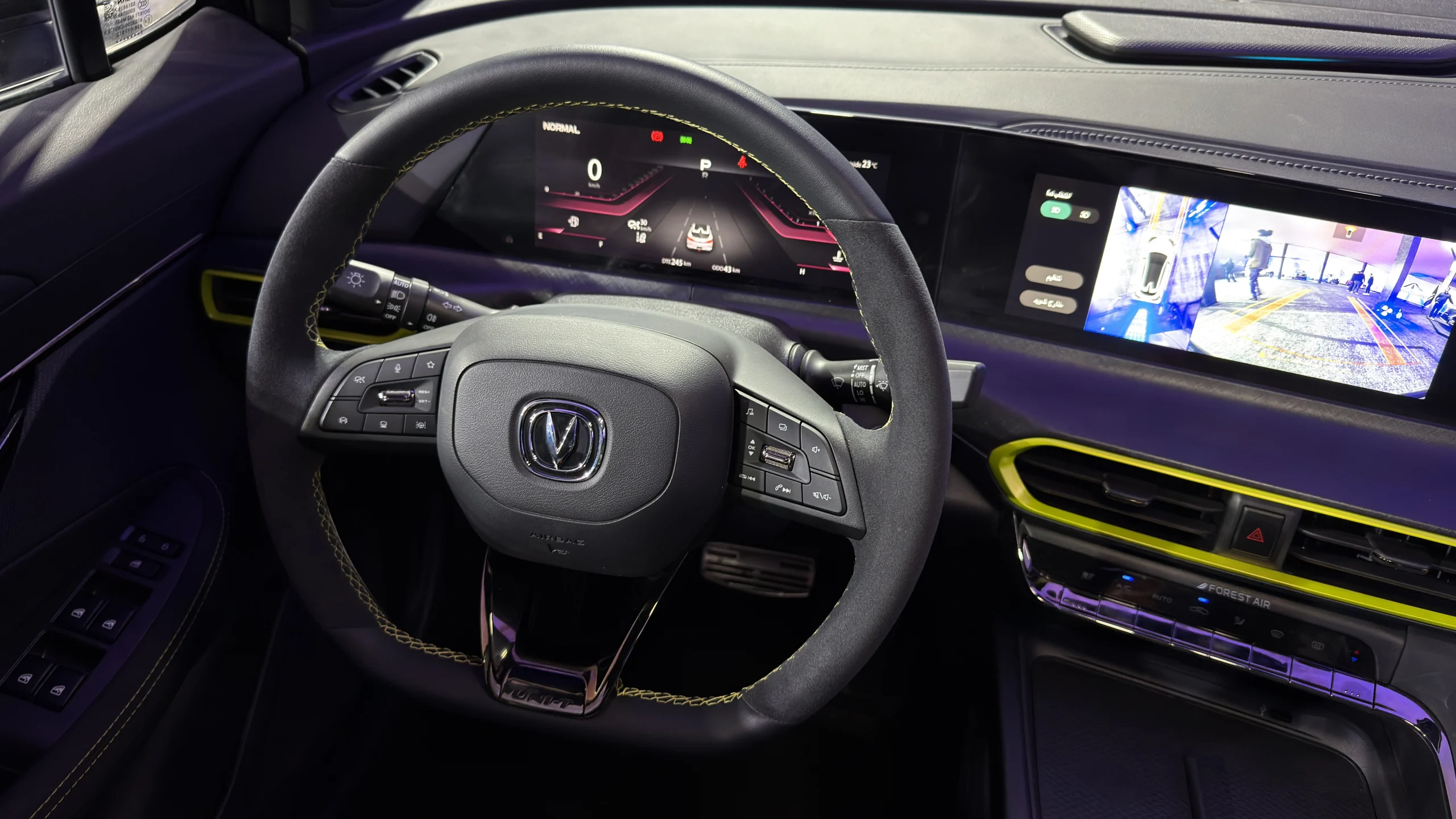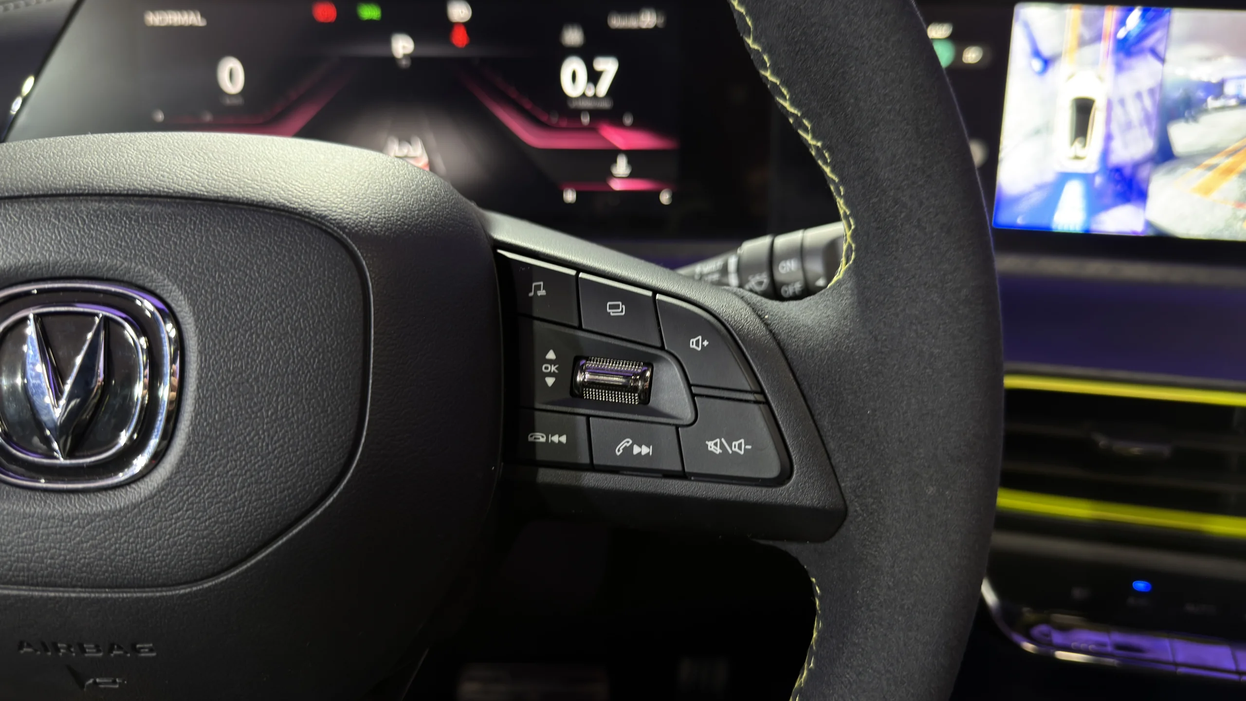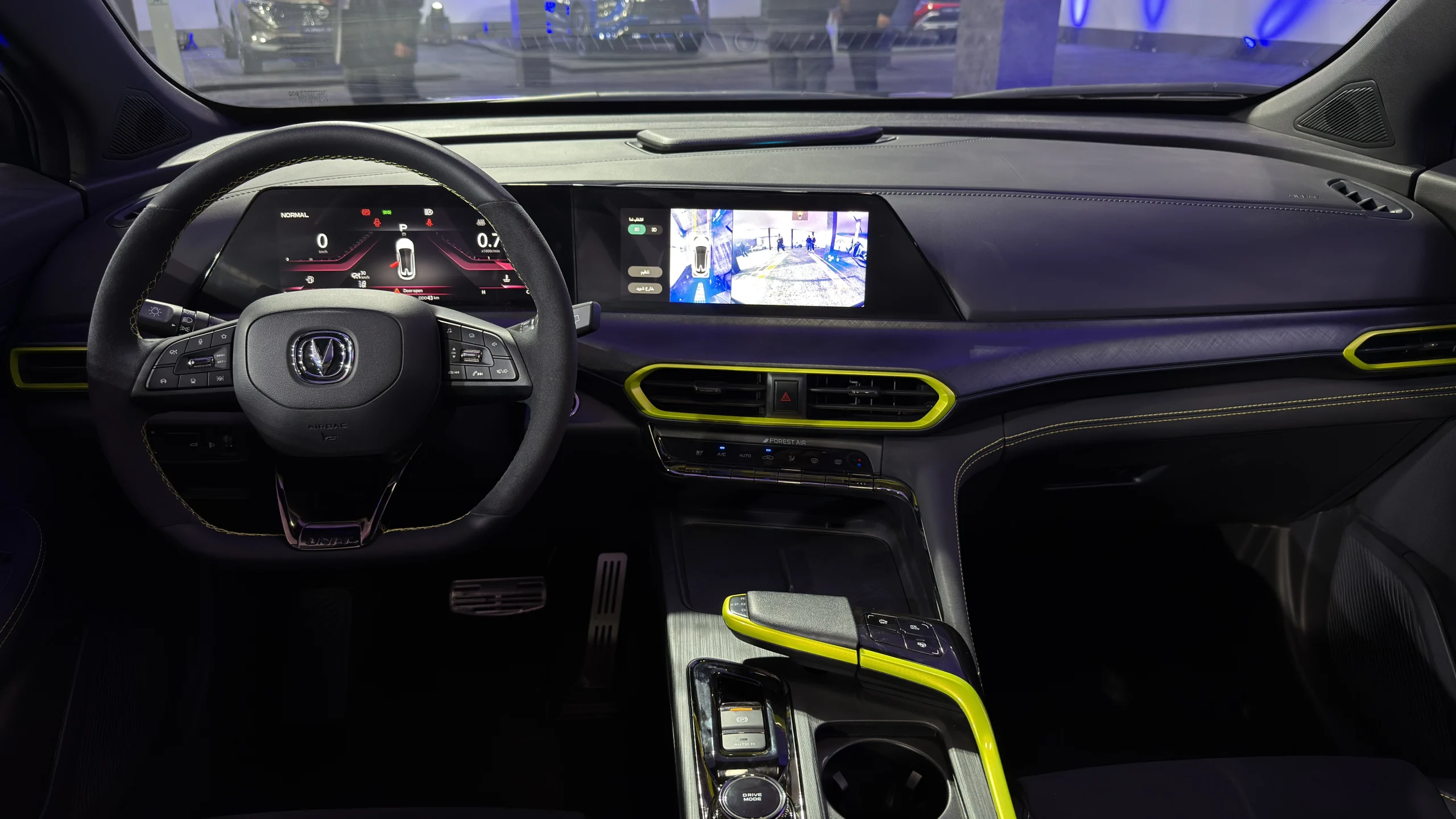 با ورود به کابین UNI‑T، فضایی مدرن و فناوریمحور پیش روی سرنشینان قرار میگیرد. داشبورد میزبان مجموعهای از نمایشگرهای دیجیتال یکپارچه است که بخش عمدهای از سطح آن را پوشش داده و با حذف اغلب دکمههای فیزیکی، طراحی مینیمال و امروزی را به نمایش میگذارد. استفاده از شیفتر الکترونیکی نیز کنسول میانی را سادهتر و کاربردیتر کرده است. صندلیها با روکش چرمی باکیفیت طراحی شدهاند و صندلی راننده از تنظیمات برقی بهره میبرد.