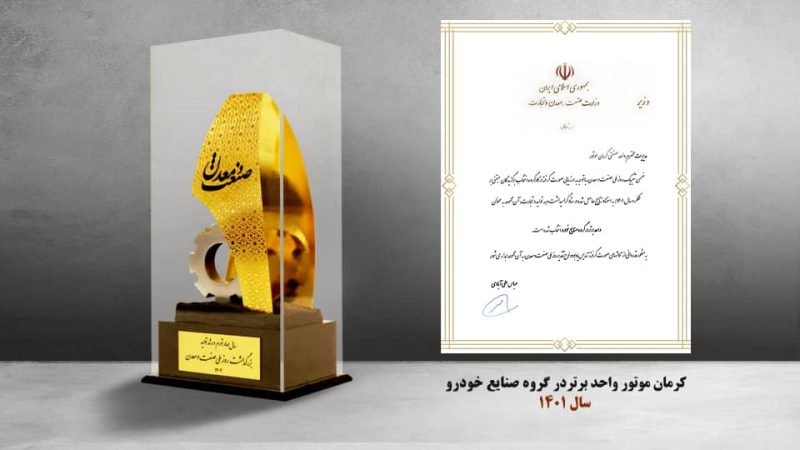 در حوزه صنایع خودرو، شرکت کرمان موتور با اشتغال زایی بیش از 5000 نفر، از طرف ستاد گرامیداشت دهه تولید و تجارت با استناد و ارزیابی عملکرد در سال 1401، به عنوان واحد برتر تولیدی در گروه صنایع خودرو انتخاب شد. سامان فیروزی مدیرعامل شرکت کرمان موتور به نمایندگی از این مجموعه با حضور در جایگاه ویژه مراسم، لوح یادبود و تندیس تولیدکننده برتر ملی را از دست وزیر صنعت، معدن و تجارت دریافت کرد.