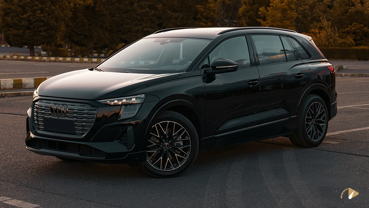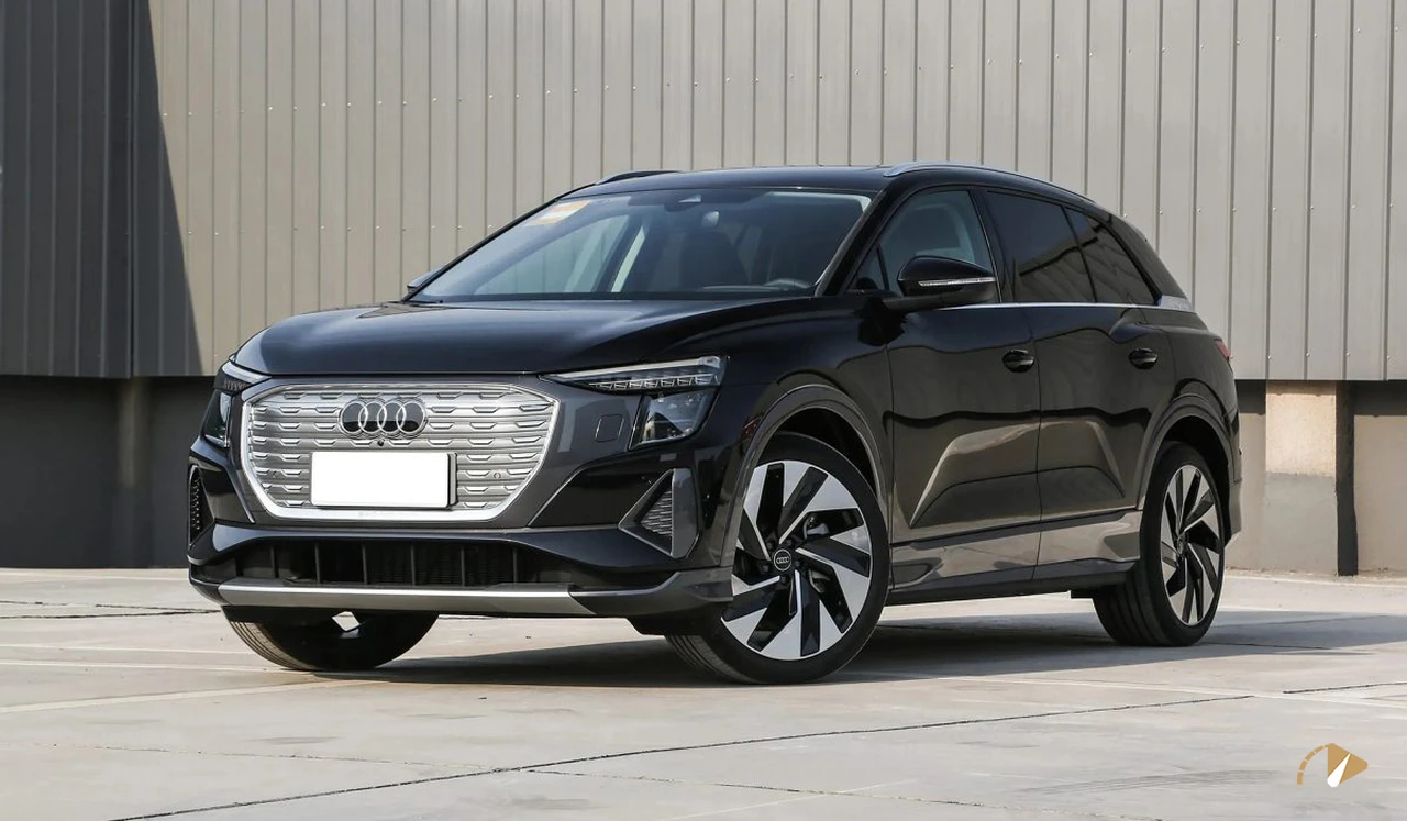نمای خارجی Q5 e-Tron با ابعاد ۴۸۷۶ میلیمتر طول، ۱۸۶۰ میلیمتر عرض و ۱۶۷۵ میلیمتر ارتفاع، ظاهری عضلانی و مدرن ارائه میدهد. فاصله محوری ۲۹۶۵ میلیمتری به افزایش فضای داخلی کمک کرده و تعادل بصری ایجاد میکند. در نمای جلو، جلوپنجره بسته با الگوی شبکهای نمادین آئودی حفظ شده و چراغهای LED ماتریکسی با گرافیک تیز، چهرهای تهاجمی میسازد. سپر حجیم با ورودیهای هوا در طرفین، حس پویایی را القا میکند. نمای جانبی شامل خطوط برجسته روی گلگیرها و رینگهای ۲۰ اینچی است که ظاهری عضلانی به خودرو میبخشد. خط سقف کشیده و نوشته e-Tron روی ستون C، هویت الکتریکی را برجسته میکند. در عقب، چراغهای LED پیوسته و سپر با تریم مشکی، طراحی ساده اما هماهنگی ایجاد کرده است. ضریب آیرودینامیک بهینهشده به کاهش مصرف انرژی و بهبود پایداری در سرعتهای بالا کمک میکند.