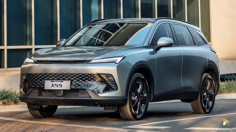 نمای خارجی بیجینگ X55 از زبان طراحی جدید برند بیجینگ پیروی می‌کند که بر عناصری مانند خطوط سیال و المان‌های مدرن تأکید دارد. جلوپنجره بزرگ بدون فریم با الگوی ستاره‌ای، همراه با چراغ‌های باریک LED و دی‌لایت‌های کشیده، ظاهری شبیه به خودروهای برقی ایجاد کرده است. سپر جلو با ورودی‌های هوای وسیع و خطوط تیز، حس اسپرت بودن را تقویت می‌کند، اما ممکن است برای برخی سلیقه‌ها بیش از حد شلوغ به نظر برسد.