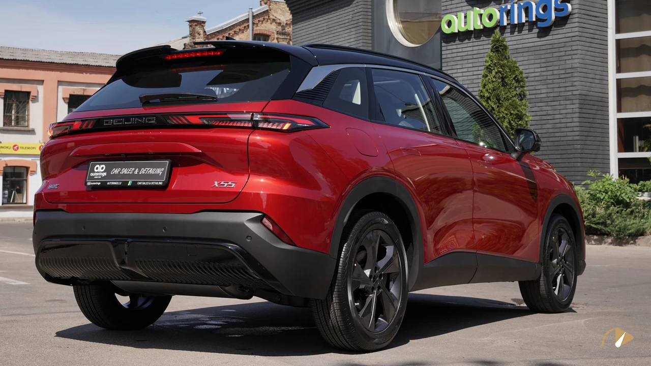 نمای خارجی بیجینگ X55 از زبان طراحی جدید برند بیجینگ پیروی میکند که بر عناصری مانند خطوط سیال و المانهای مدرن تأکید دارد. جلوپنجره بزرگ بدون فریم با الگوی ستارهای، همراه با چراغهای باریک LED و دیلایتهای کشیده، ظاهری شبیه به خودروهای برقی ایجاد کرده است. سپر جلو با ورودیهای هوای وسیع و خطوط تیز، حس اسپرت بودن را تقویت میکند، اما ممکن است برای برخی سلیقهها بیش از حد شلوغ به نظر برسد.