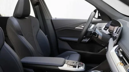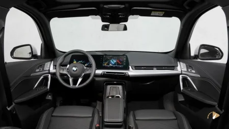کابین X1 به سبک جدید ب ام و طراحی شده و از دو نمایشگر خمیده یکپارچه شامل کلاستر دیجیتال ۱۰.۲۵ اینچی و صفحهنمایش مرکزی ۱۰.۷ اینچی بهره میبرد. داشبورد به صورت افقی و با قوس ملایم به سمت راننده طراحی شده که حس رانندهمحور بودن را حفظ میکند. کنسول میانی شناور است و به جای اهرم دنده سنتی، از سوییچ کوچک الکترونیکی استفاده شده که فضای ذخیرهسازی بیشتری ایجاد کرده است.