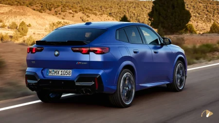 در بخش عقب، چراغهای باریک دوقلو، خروجیهای اگزوز (در نسخههای اسپرت چهارگانه) و خطوط جسورانه، جلوهای مدرن ایجاد میکنند. دستگیرههای درب همسطح با بدنه، به بهبود آیرودینامیک کمک کرده است. کلیت طراحی X2 ترکیبی از عناصر سنتی بی ام و با رویکرد کوپهمانند است که آن را از مدلهای جعبهایتر متمایز میسازد.