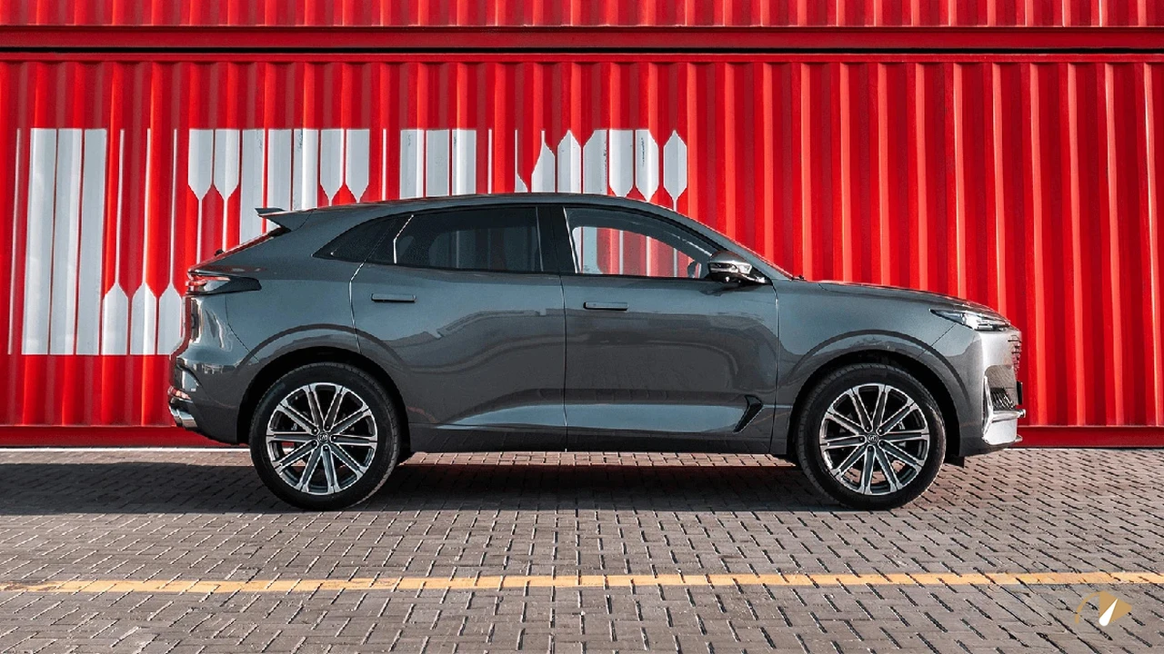 در نمای جانبی، خطوط بدنه با انحناهای عضلانی و سقف شیبدار، فرم کوپهمانند را برجسته میکنند. دستگیرههای درب مخفیشونده الکترونیکی و رینگهای ۲۰ اینچی آلومینیومی، به بهبود آیرودینامیک و ظاهر اسپرت کمک میکنند. ابعاد بدنه شامل طول ۴۸۶۵ میلیمتر، عرض ۱۹۴۸ میلیمتر، ارتفاع ۱۶۹۰ میلیمتر و فاصله محوری ۲۸۹۰ میلیمتر است که پایداری مناسبی در پیچها فراهم میآورد، اما ارتفاع نسبتاً کم ممکن است در مسیرهای ناهموار محدودیت ایجاد کند. نمای عقب با چراغهای متصل LED، اسپویلر سقفی دوبل و دیفیوزر بزرگ همراه با چهار خروجی اگزوز، جذابیت بصری را افزایش میدهد. حجم صندوق عقب ۵۱۸ لیتر و ظرفیت باک سوخت ۷۰ لیتر، برای استفاده روزمره و سفرهای کوتاه کافی است، هرچند در مقایسه با برخی رقبا، فضای بار میتوانست بیشتر باشد. بدنه از فولاد مقاوم ساخته شده و رنگهای موجود مانند سفید، مشکی و خاکستری، گزینههای متنوعی برای خریداران فراهم میکنند.