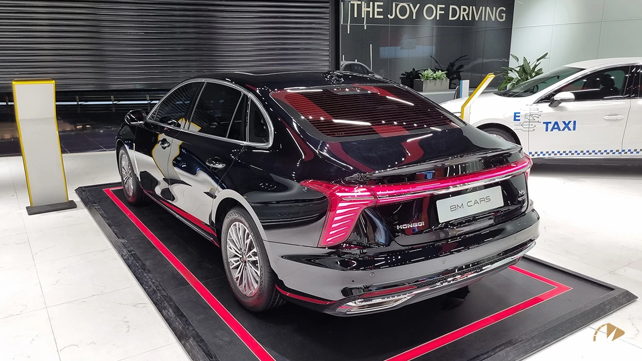 در بخش عقب، چراغهای Y شکل با نوار LED اتصالدهنده، طراحی مدرن را تکمیل میکنند. خروجیهای اگزوز دوبل واقعی و جزئیات کرومی زیر چراغها، ظاهری اسپرت و لوکس ایجاد کردهاند. ابعاد خودرو با طول ۴۹۸۵ میلیمتر، عرض ۱۸۶۵ میلیمتر و ارتفاع ۱۴۶۵ میلیمتر، آن را در دسته سدانهای بزرگ قرار میدهد و فاصله محوری ۲۹۲۰ میلیمتر، فضای داخلی مناسبی فراهم میکند. در مجموع، طراحی بدنه هونگچی H5 ساده اما هماهنگ است و از الهامگیری از برندهای اروپایی مانند مرسدس بنز بهره میبرد، هرچند در برخی جزئیات به خودروهای چینی دیگر شباهت دارد.