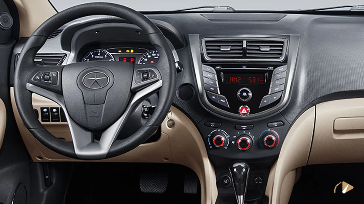 کابین جک J4 از مواد پلاستیکی خشک اما با کیفیت مونتاژ قابل قبول ساخته شده است. داشبورد طراحی سادهای دارد و در نسخههای جدید نمایشگر لمسی ۷ اینچی با سیستم عامل اندروید در مرکز آن قرار گرفته است. فرمان سهپر با کلیدهای کنترلی، صفحه آمپر آنالوگ با نمایشگر کوچک مرکزی و روکش چرم مصنوعی صندلیها با دوخت قرمز از ویژگیهای بارز کابین هستند. فضای سر و پای سرنشینان جلو و عقب در سطح خوبی قرار دارد و برای چهار سرنشین بزرگسال کاملاً راحت است. حجم صندوق عقب ۵۵۰ لیتر یکی از نقاط قوت این خودرو محسوب میشود. عایقبندی صوتی کابین در سرعتهای بالا متوسط است و در شتابگیریهای شدید صدای موتور به داخل نفوذ میکند.