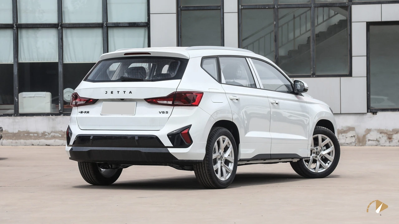 در نمای عقب، چراغ‌ها با ترکیب خطوط منحنی و تیز، شباهتی به برخی خودروهای چینی مانند هایما S5 دارند. سپر عقب ساده طراحی شده و بدون خروجی‌های اگزوز تقلبی، تمرکز بر کارایی دارد. رینگ‌های آلیاژی استاندارد و گزینه‌های رنگی مختلف، امکان شخصی‌سازی محدود را فراهم می‌کنند. کلیت طراحی خارجی جتا VS5، کاربردی و بدون پیچیدگی‌های زیاد است و برای رانندگی روزمره در شهرها مناسب به نظر می‌رسد، هرچند در مقایسه با رقبای جدیدتر، ممکن است فاقد نوآوری‌های بصری باشد.