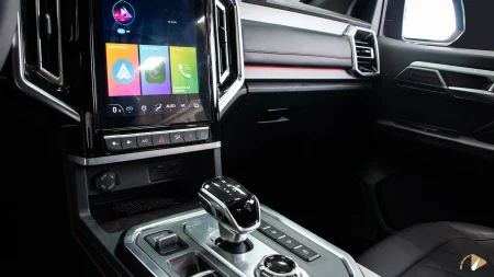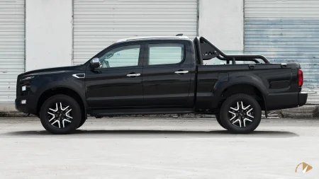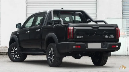 در نمای جانبی، خط شانه برجسته، گلگیرهای عضلانی، رکابهای مشکی و رینگهای ۱۸ اینچی دو رنگ، ظاهری اسپرت و آفرودی به خودرو بخشیدهاند. فاصله محورها به ۳۱۱۰ میلیمتر رسیده که باعث افزایش فضای کابین و پایداری بهتر شده است. در بخش عقب طراحی سادهتر است؛ چراغهای عمودی با گرافیک جدید، سپر مشکی با محل پله برای دسترسی آسان به قسمت بار و رولبار اسپرت از نکات قابل توجه هستند.