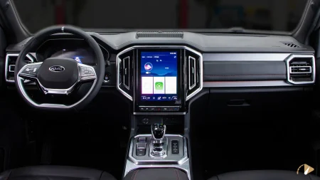 کابین کی ام سی T9 نسبت به T8 پیشرفت چشمگیری داشته و از زبان طراحی جدید جک بهره میبرد. داشبورد با خطوط صاف و ترکیب متریال نرم و خشک ساخته شده و نمایشگر عمودی ۱۰.۴ اینچی لمسی در مرکز، حس مدرنی به فضا میدهد. کلاستر دیجیتال ۷ اینچی، فرمان D-Cut با دکمههای کنترلی و دستهدنده الکترونیکی از دیگر عناصر بهروز کابین هستند.
