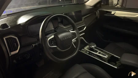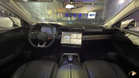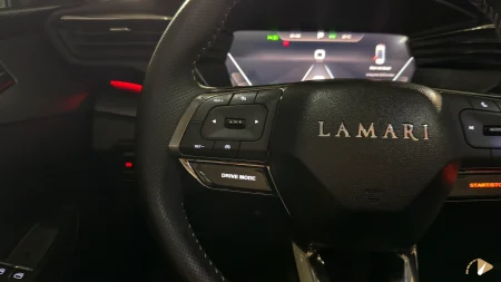 کابین لاماری هیرکانی با رویکرد مینیمال و مدرن طراحی شده و از متریال نسبتا باکیفیت شامل چرم مصنوعی با دوخت، پلاستیک نرم و تریم طرح فلز بهره میبرد. داشبورد چندسطحی با دو نمایشگر بزرگ (پشت آمپر دیجیتال و مانیتور مرکزی لمسی) و حداقل کلید فیزیکی، فضایی شبیه به خودروهای اروپایی ایجاد کرده است. فرمان D شکل با دکمههای لمسی، نورپردازی مخفی چندرنگ و دریچههای تهویه باریک، حس لوکس نسبی را منتقل میکنند. فاصله محوری طولانی، فضای پای بسیار خوب برای ردیف دوم و ارتفاع مناسب سقف را به همراه دارد. نسخه هفتنفره نیز ارائه میشود که ردیف سوم آن بیشتر برای کودکان یا مسیرهای کوتاه مناسب است. با خواباندن کامل صندلیهای ردیف دوم و سوم، حجم صندوق به مقدار قابلتوجهی افزایش مییابد و برای خانوادهها کاربردی خواهد بود.