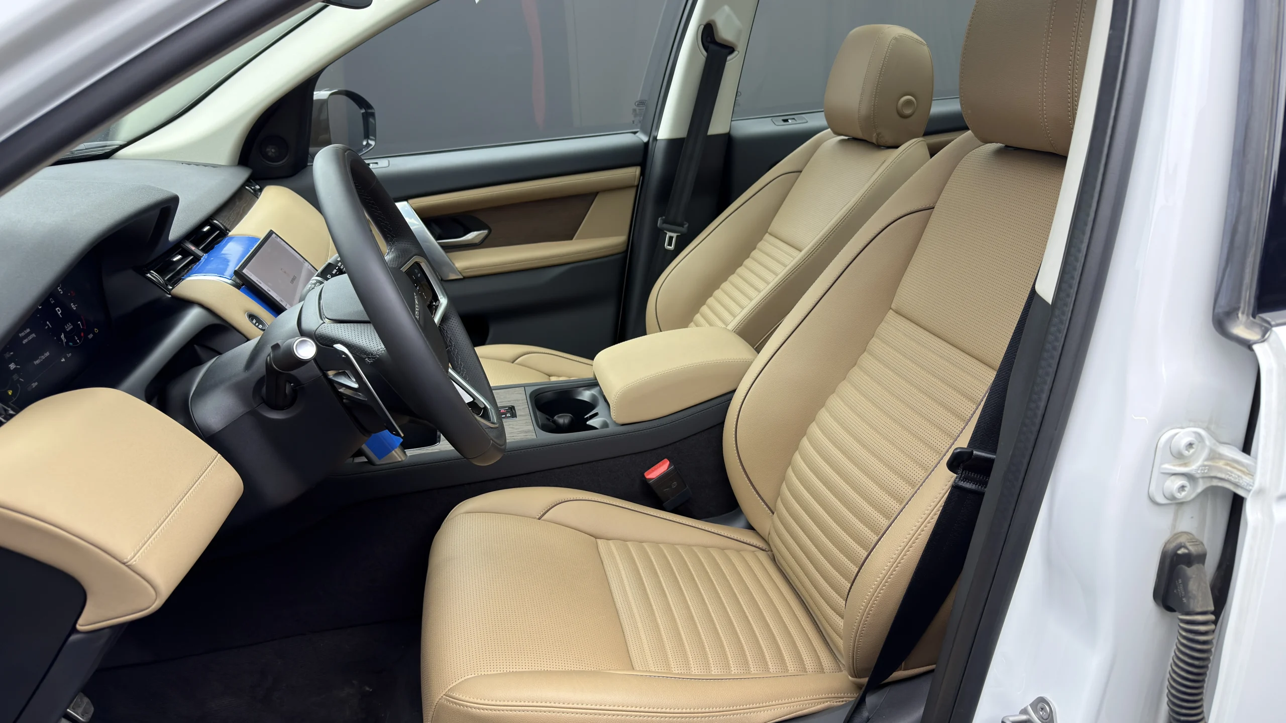 کابین دیسکاوری اسپرت با رویکرد مینیمالیستی طراحی شده و بر راحتی و فضای جادار تمرکز دارد. داشبورد افقی و ساده، حس باز بودن را ایجاد میکند و از مواد باکیفیتی مانند چرم نرم برای صندلیها و سطوح استفاده شده است. صندلیهای جلو با تنظیم برقی و پشتیبانی از کمر، برای رانندگی طولانی مناسب هستند، در حالی که ردیف عقب با قابلیت جابجایی، فضای پای کافی برای سرنشینان بزرگسال فراهم میکند.