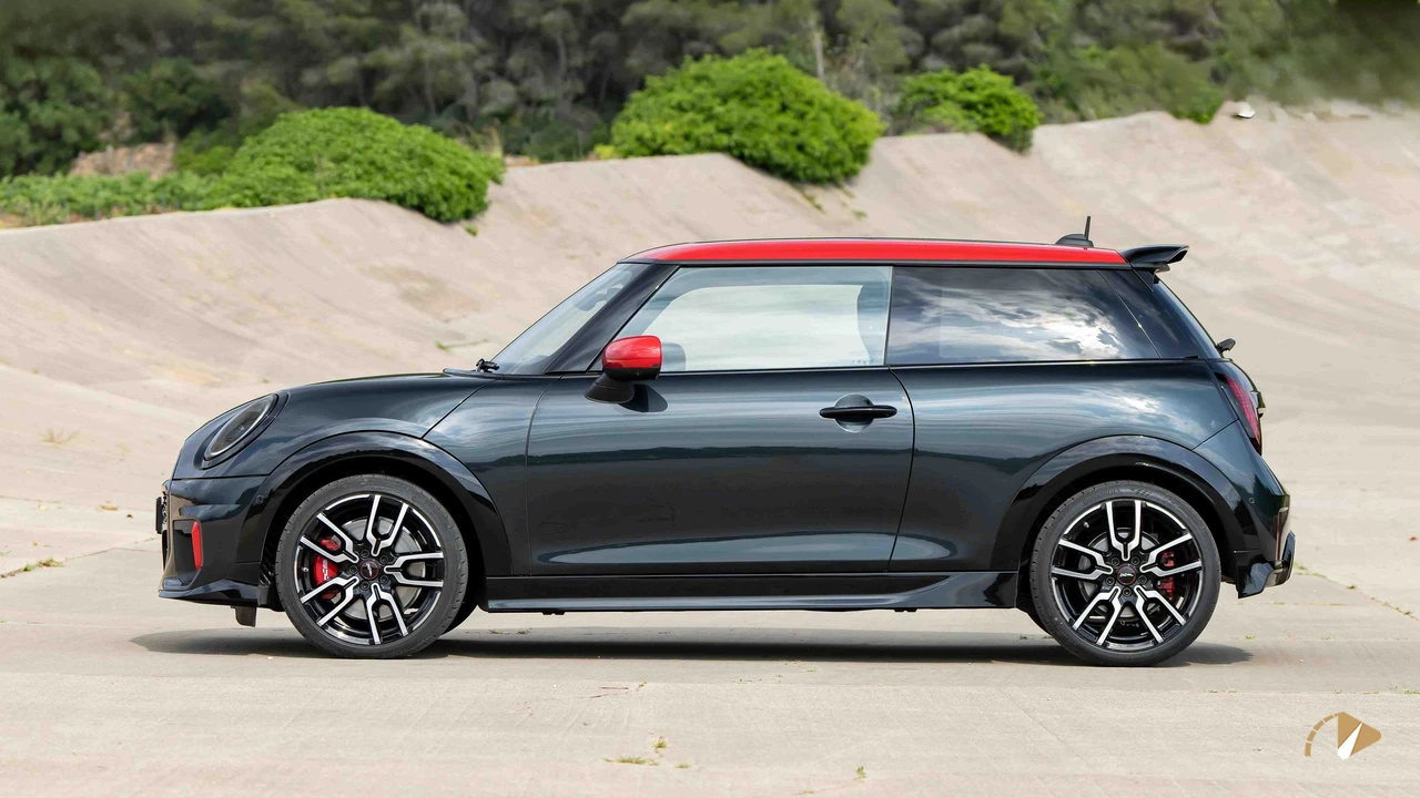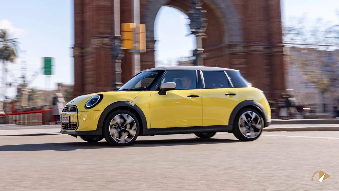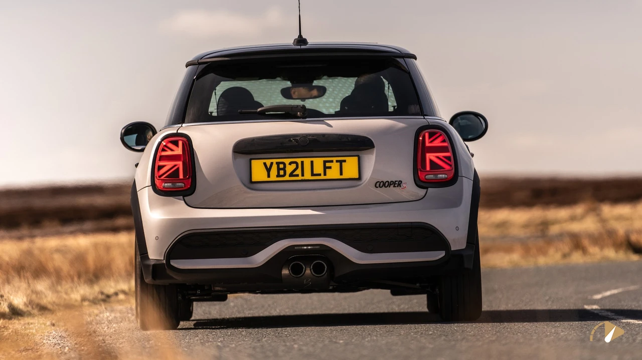 در نمای جانبی، بدنه جعبهای شکل با سقف مشکی و آینههای جانبی کرومی یا همرنگ بدنه دیده میشود. طرح پرچم انگلستان روی آینهها جزئیاتی جالب اضافه کرده، اما کلیت طراحی ممکن است برای برخی کاربران سنتی به نظر برسد. ابعاد خودرو با طول 3876 میلیمتر، عرض 1744 میلیمتر و ارتفاع 1432 میلیمتر، آن را در دسته هاچبکهای جمعوجور قرار میدهد. در بخش عقب، چراغهای مثلثی با گرافیک الهامگرفته از پرچم انگلستان جایگزین مدلهای بیضی قدیمی شدهاند. این تغییرات، هویت برند را حفظ کرده، اما افزایش طول محور چرخها در نسخه پنجدرب، فضای بیشتری برای سرنشینان عقب فراهم کرده است. در کل، طراحی خارجی تعادلی بین سنت و مدرنیته برقرار میکند، هرچند ممکن است برای سلیقههای مدرن کمی محافظهکارانه باشد.