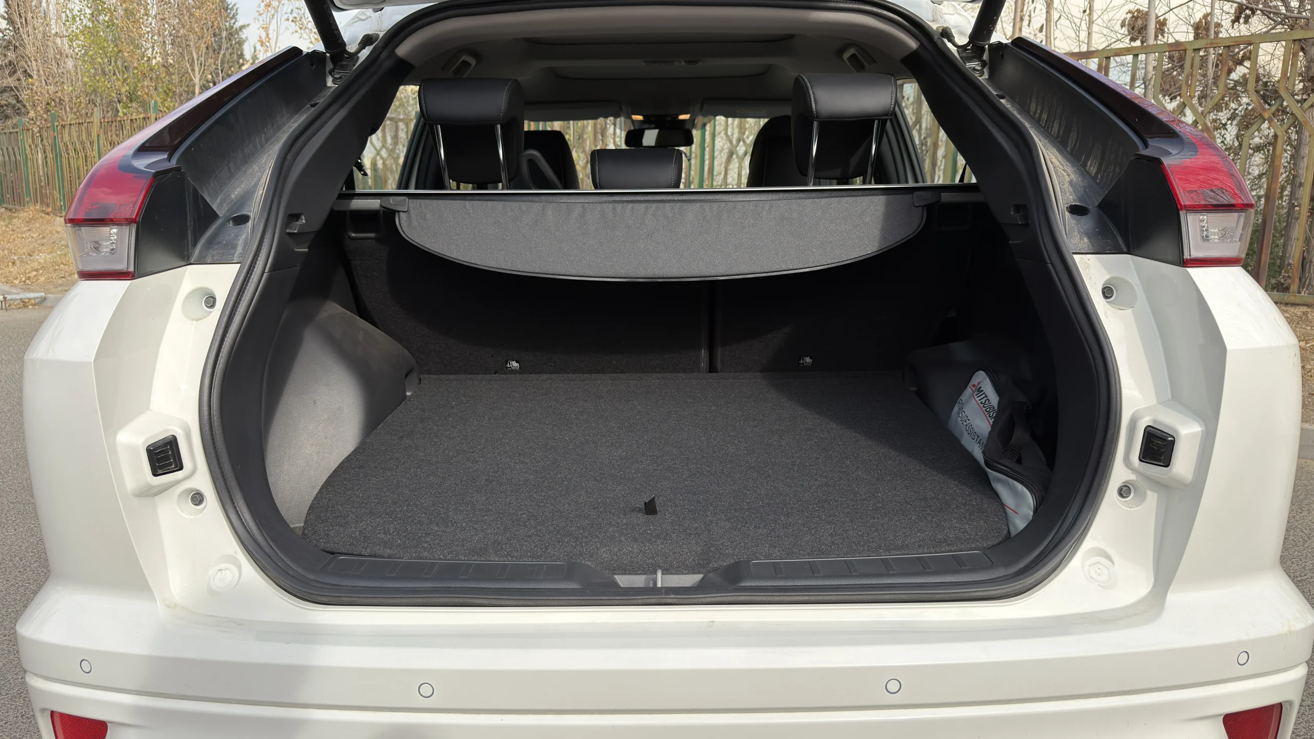 فضای داخلی برای پنج سرنشین بزرگسال مناسب است و فاصله محوری ۲۶۷۰ میلیمتری، جای پای کافی در ردیف عقب ارائه میدهد. صندلیها با پوشش چرم و تنظیمات برقی، راحتی نسبی را تضمین میکنند، اما حجم صندوق عقب با ۳۳۱ لیتر در حالت استاندارد، کمتر از رقبای همرده است و برای خانوادههای پرجمعیت ممکن است محدودیت ایجاد کند. در مجموع، کابین اکلیپس کراس اولویت را به کارایی داده و از المانهای مدرن مانند سقف پانوراما برای بهبود تجربه استفاده کرده است.