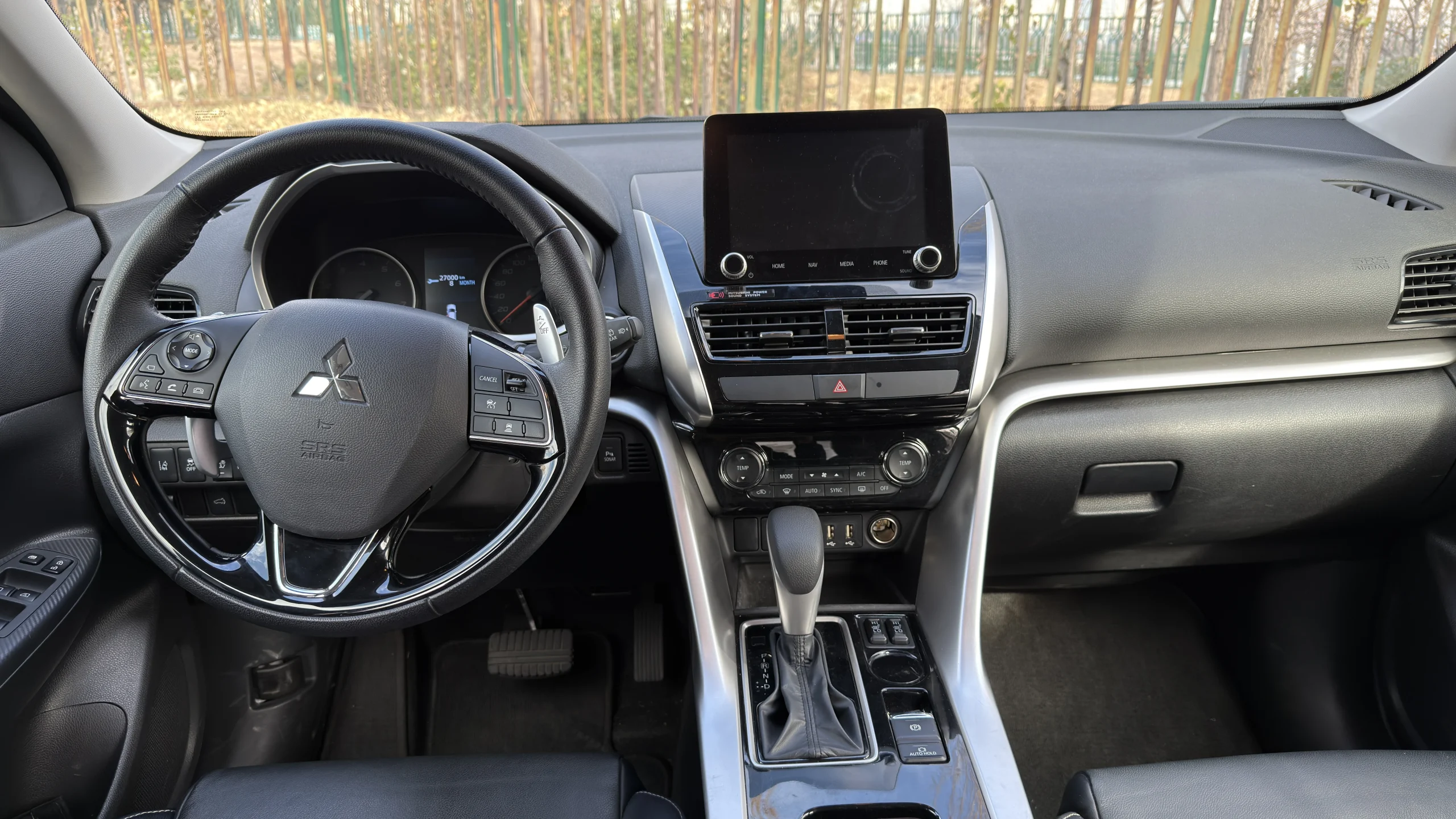 داخل کابین میتسوبیشی اکلیپس کراس با رویکردی ساده و کاربردی طراحی شده که ممکن است برای برخی کاربران کمی قدیمی به نظر برسد. داشبورد از متریال پلاستیکی و چرمی تشکیل شده که کیفیت قابل قبولی دارد، اما در سطح محصولات لوکس نیست. نمایشگر ۸ اینچی مرکزی به صورت بیرونزده قرار گرفته و کنترلهای فیزیکی مانند دکمهها و پد موس، دسترسی آسان را فراهم میکنند، هرچند این عناصر میتوانند حس شلوغی ایجاد کنند.