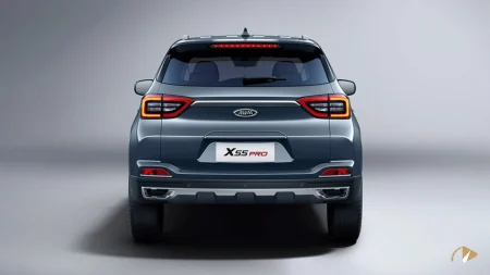 نمای جلوی X55 پرو با جلوپنجره بزرگ کهکشانی الماسی شکل و چراغ‌های باریک LED به‌روز شده و چهره‌ای اسپرت‌تر و هماهنگ‌تر نسبت به مدل قبلی ارائه می‌دهد. سپر جدید همراه با ورودی‌های هوای بزرگ‌تر و نوارهای قرمز در قسمت پایین، حس پویایی را تقویت کرده است. در نمای جانبی خطوط برجسته بدنه، رینگ‌های ۱۷ اینچی دو رنگ و کالیپرهای ترمز قرمز رنگ جلب توجه می‌کنند. نمای عقب تغییرات کمتری داشته و عمدتاً به گرافیک جدید چراغ‌ها و دیفیوزر ساده محدود شده است. ابعاد بدنه ۴۳۱۸ میلی‌متر طول، ۱۸۳۰ میلی‌متر عرض و ۱۶۶۲ میلی‌متر ارتفاع با فاصله محوری ۲۶۱۰ میلی‌متر است که آن را در دسته کراس‌اوورهای جمع‌وجور قرار می‌دهد و ابهت ظاهری کمتری نسبت به رقبای بزرگ‌تر دارد.