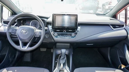 پشت آمپر در نسخه بنزینی آنالوگ با نمایشگر کوچک ۴.۲ اینچی است که اطلاعات ضروری را نشان میدهد، در حالی که مدل هیبریدی از نسخه دیجیتالی بهره میبرد و مدرنتر به نظر میرسد. فرمان سهشاخه ارگونومیک است و کنترلهای راحتی روی آن قرار دارد. صندلیها راحتی خوبی دارند و دربرگیرندگی مناسبی برای سرنشینان فراهم میکنند؛ روکش پارچهای در مدلهای پایه و چرمی در برخی هیبریدیها دیده میشود. فضای داخلی جادار است، اما برای خانوادههای بزرگ ممکن است محدود به نظر برسد. خطوط پیانویی در بخش میانی داشبورد از یکنواختی کاسته و جلوهای ساده اما مرتب ایجاد کرده است.
