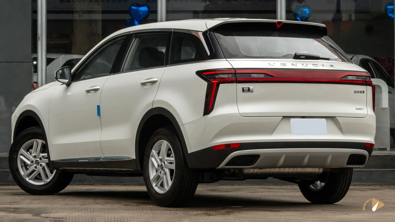 نمای جلویی ونوسیا استار با جلوپنجره بزرگ V شکل و نوارهای کرومی که چراغهای باریک را به هم متصل میکنند، ظاهری مستقل اما آشنا ایجاد کرده است. لوگوی V شکل برند در مرکز جلوپنجره و نشان ستارهای روی کاپوت از جزئیات برجسته هستند. در نمای جانبی، خطوط شارپ در بالا و پایین درها تا چراغهای عقب ادامه مییابند و نوار کرومی دور پنجرهها همراه با ستونهای مشکی سقف، حس کشیدگی بدنه را افزایش میدهند.