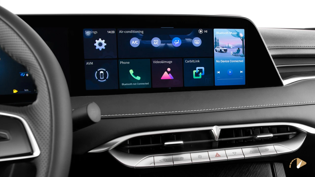 کنسول میانی با دنده الکتریکی ساده طراحی شده، اما کمبود فضاهای ذخیرهسازی ممکن است برای برخی کاربران نامطلوب باشد. نورپردازی داخلی قابل تنظیم و سقف شیشهای فوتوکرومیک که بر اساس نور محیط تغییر رنگ میدهد، به باز بودن فضا کمک میکند. سیستم تهویه دوکاناله اتوماتیک عملکرد مناسبی دارد، اما کیفیت مونتاژ در جزئیات میتوانست دقیقتر باشد تا با استانداردهای رقبا همخوانی بیشتری داشته باشد.